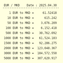 Converter Euro Macedonian Denar