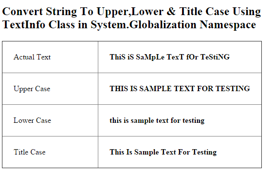 But using cultureinfo and textinfo classes we can do title case of a string. Makes everything lowercase except the first character and i. There is no direct method like toupper tolower for title case. Convert string to title case.
